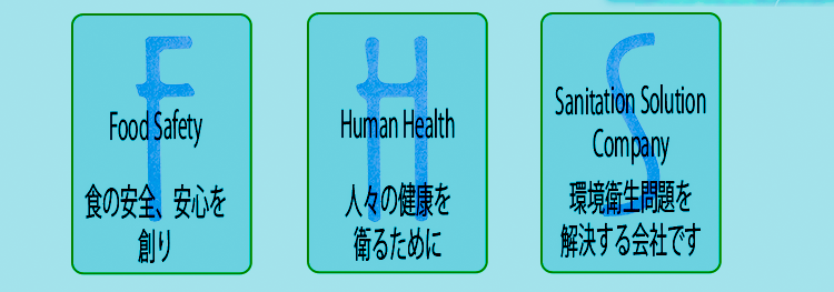 F·H·S株式会社は、人々の健康・安全・安心のために、人の食と医療、地球の気候変動に関連する問題の分野における衛生的な環境の課題解決を通じて、貴社の食品安全文化の構築をサポートするサニテーション・ソリューションカンパニーです。